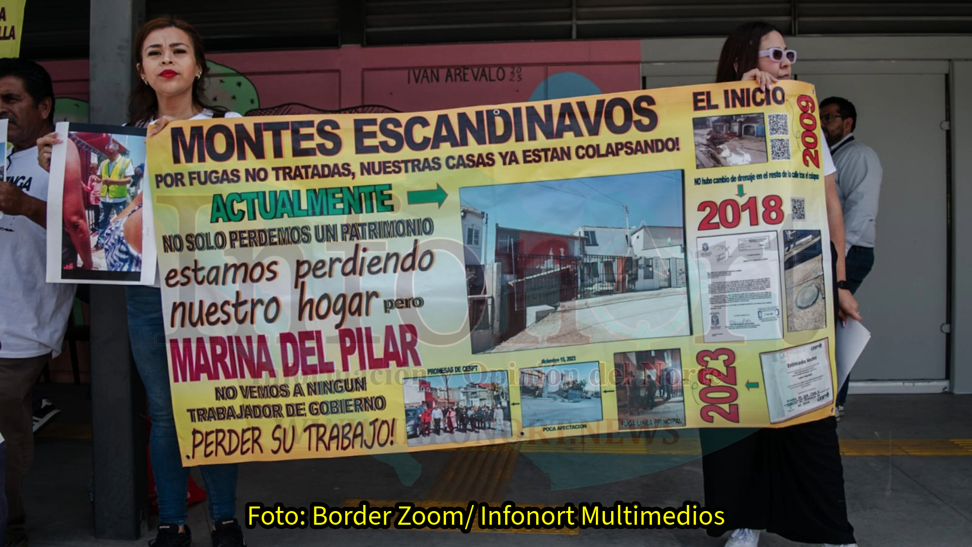 Tijuana, Baja California.- Un grupo de habitantes de la calle Montes Escandinavos de la colonia Lomas Conjunto Residencial, se manifestaron pacíficamente afuera del CEART, donde la Gobernadora Marina del Pilar estaba llevando a cabo la mañanera, para solicitarle apoyó para salvar sus casas que se están derrumbando.
