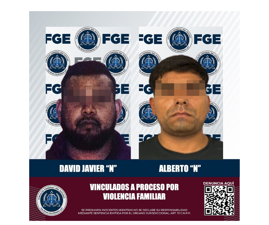 TIJUANA, BAJA CALIFORNIA.- La Fiscalía Especializada en Delitos Contra Mujeres por Razón de Género informa sobre la vinculación a proceso de dos hombres, quienes, en casos distintos, fueron llevados ante jueces de control por los delitos de violencia familiar, lesiones y privación ilegal de la libertad.